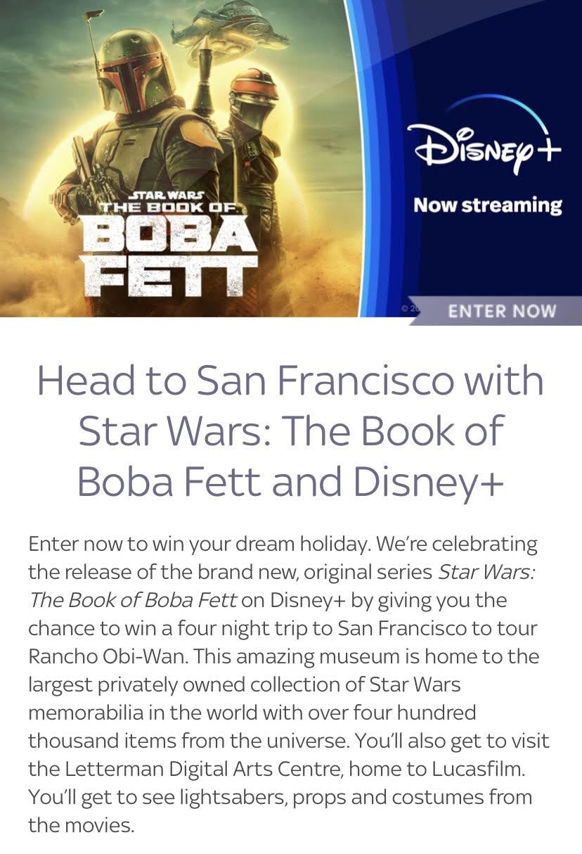 With The Book of Boba Fett currently showing on Disney Plus, which is available through Sky, it’s no surprise that one of the prizes is Fett themed. Sky are offering a family of four a four night holiday to San Francisco which includes a tour of Rancho Obi-Wan, the largest privately owned Star Wars collection in the world! Then a tour of the Letterman Digital Arts Centre, home to Lucasfilm. A truly amazing prize and a once in a lifetime opportunity for many.