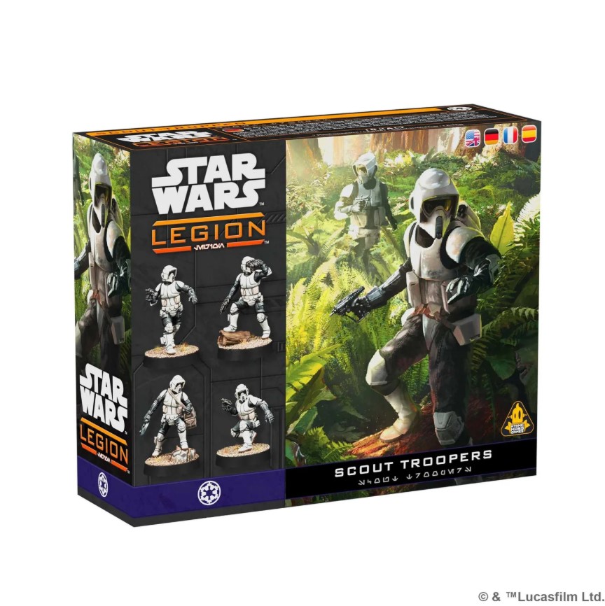 From Atomic Mass Games, this is the new Star Wars: Legion – Scout Troopers for Star Wars: Legion, bringing 7 soldiers of the Empire to your tabletop, keen to not only defeat the forces of the Rebel Alliance, but also not to end up and snack food or bongos for the murder bears of Endor.