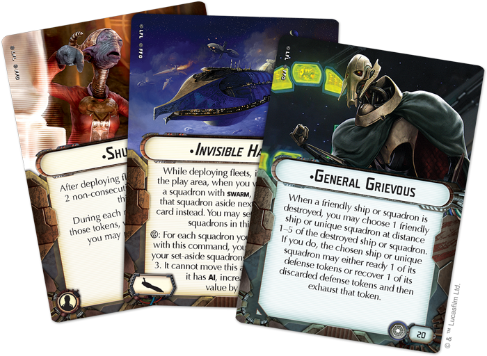 Not only do these expansions add the power of these two large ships to your fleets, they also put the skills of some of the Separatist Alliance’s most nefarious officers at your disposal in the form of upgrade cards. Hyper intelligent droids join members of the Corporate Alliance, Commerce Guild, and more aboard your ships, unlocking even more strategic possibilities. Meanwhile, the Separatist war machine grows even larger with new weapons, fleet commands, titles, and a host of other upgrades.