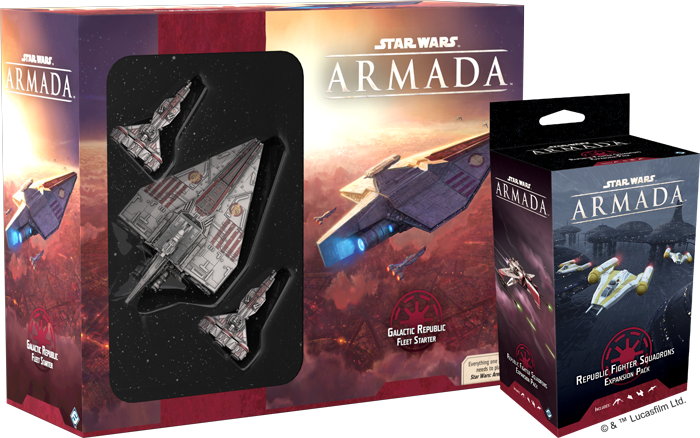 Now that the Separatists have their vessels on the battle map, it’s time to counter them. Fantasy Flight Games announces the first Galactic Republic expansions for Star Wars: Armada: the Galactic Republic Fleet Starter and the Republic Fighter Squadrons Expansion Pack.