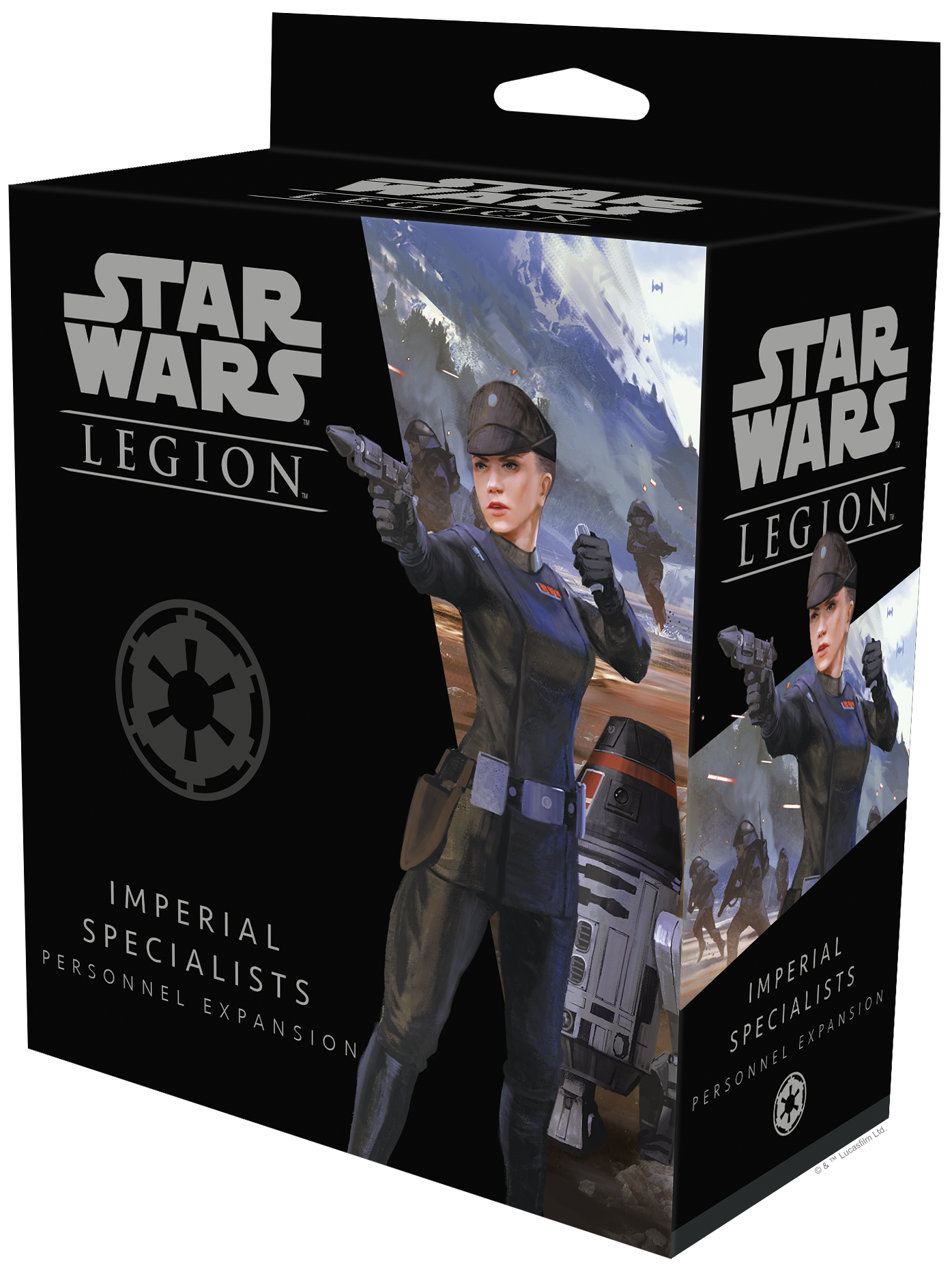 This expansion for Star Wars: Legion contains four finely sculpted Imperial specialist miniatures, along with new unit, upgrade and command cards. This expansion allows a player to field a generic Imperial commander unit and add a comms specialist, medical droid, and astromech droid to other units in their army.
