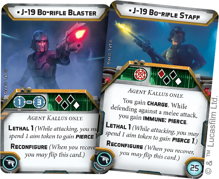 This expansion invites you to put this ruthless agent in command of your army, beginning with a highly customizable, unpainted hard plastic Agent Kallus miniature that reflects his status as a ruthless Imperial agent. In addition to choosing between two facial expressions for your miniature, you’ll also be able to assemble your Agent Kallus with the trademark Imperial Security Bureau helmet or with no helmet at all. Finally, Agent Kallus is deadly up close and with a blaster and you can choose whether he appears with his signature J-19 Bo-Rifle in its blaster or staff forms.