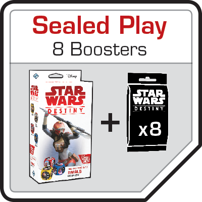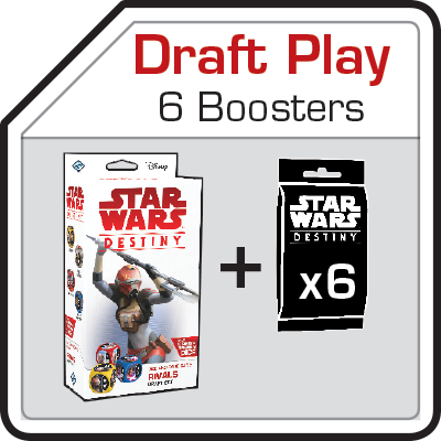 The Star Wars: Destiny Rivals Draft Set introduces a new way to play Destiny in the form of draft and sealed events. Playing in a draft requires each player to have one Rivals Draft Set and six Star Wars: Destiny booster packs of any set. What’s more, the cards in your Rivals Draft Set are completely reusable—no matter how many drafts you play, you’ll only ever need to buy a single copy of the Rivals Draft Set to enable your draft games of Star Wars: Destiny!