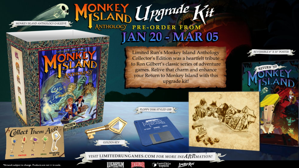 Via Limited Run Games, this superb bundle bringing the classic Return to Monkey Island back to gamers and collectors, available on Switch, PC, PS5 and Xbox Series X. There’s even an upgrade Anthology Kit to bring them all together in the $419.99 Fan Bundle that includes all versions and the Anthology Kit.
