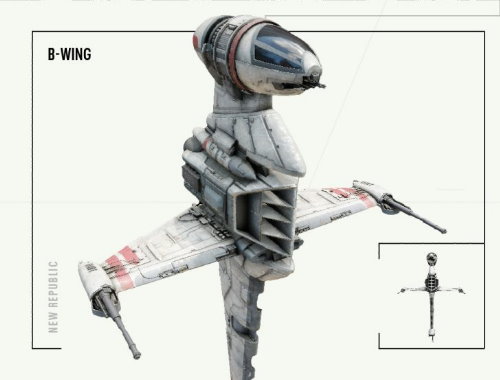 Designed as the “Blade Wing” prototype by Mon Calamari engineer Quarrie and finely tuned under General Hera Syndulla’s guidance, the A/SF-01 B-wing starfighter makes its way into the New Republic’s fleet in this update.