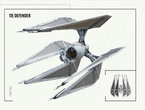 Naturally, there’s a fitting counterpart for it going to the opposing faction, too. From the mind of the brilliant military tactician Grand Admiral Thrawn and Sienar Fleet Systems, the TIE/d “Defender” multi-role starfighter will join the Imperial Navy as well.