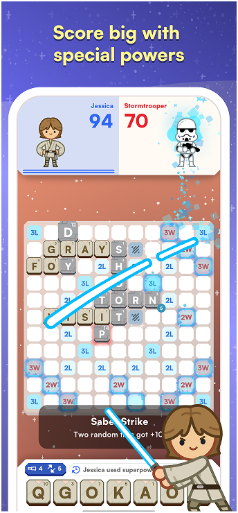 Play the Daily Challenge to test your skills in a unique word puzzle every day. Defeat the Empire to unlock exclusive characters available only through Daily Challenges.