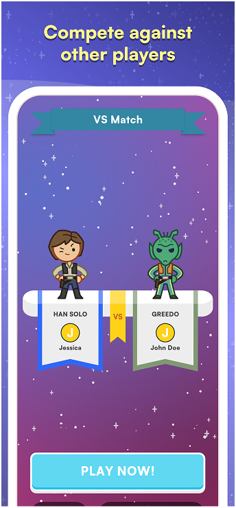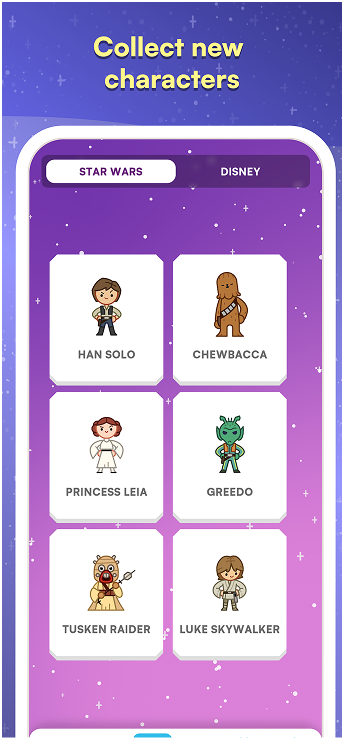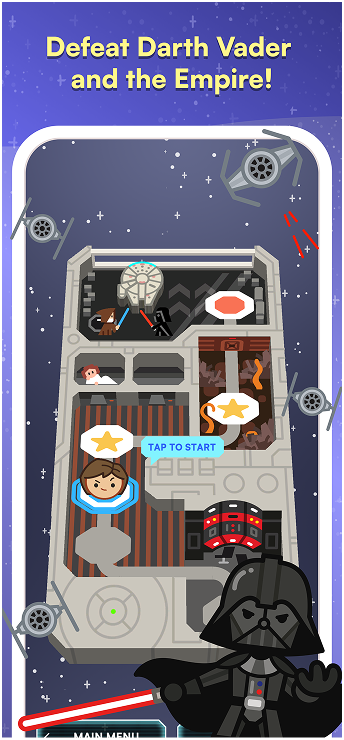 Team up with iconic Star Wars™ heroes to defeat the Empire in a spelling battle for the fate of the galaxy. Venture through the Star Wars saga’s most memorable moments to unlock classic characters and hone your word game skills.