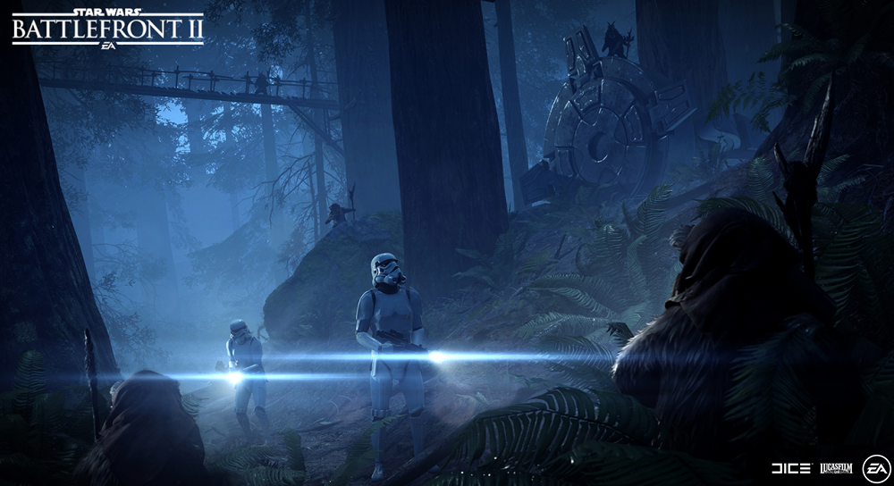 Electronic Arts announced today that Star Wars Battlefront II is getting a new mode: Ewok Hunt, in which you play as Endor’s furry occupants and stalk Imperial invaders in the cover of night — or try to survive as a stormtrooper, fending off menacing Ewoks until evac arrives. It’s fun and scary on both sides, and arrives April 18.