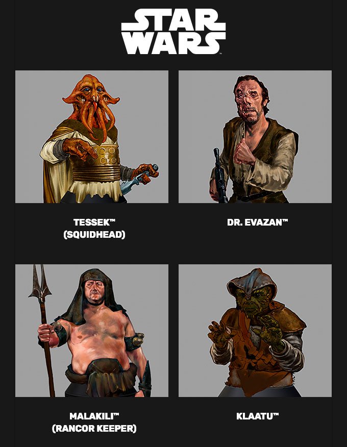 To choose one of the classic-trilogy busts we’ll offer, GG Ltd. is letting 2019-2020 Premier Guild members vote on four different classic characters: Klaatu, the skiff guard; Tessek, the squidlike Quarren; Dr. Evazan, the wanted man; and Malakili, the Rancor keeper. Voting runs through June 30, so get your vote in!