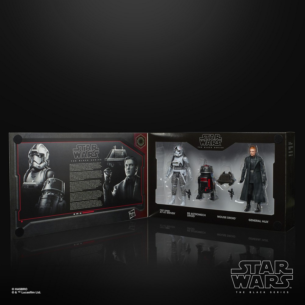 Fans and collectors can imagine scenes from the STAR WARS Galaxy with these premium STAR WARS: THE BLACK SERIES 6-INCH THE FIRST ORDER TOY ACTION Figures including AT-AT DRIVER, R5 ASTROMECH DROID, MOUSE DROID, and GENERAL HUX. STAR WARS fans can display these 6-inch scale fully articulated figures featuring poseable head, arms, and legs, as well as premium deco, in their action figure and vehicle collection. Includes 4 figures and 2 accessories. This item is a Disney Parks exclusive.