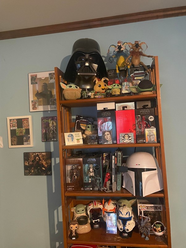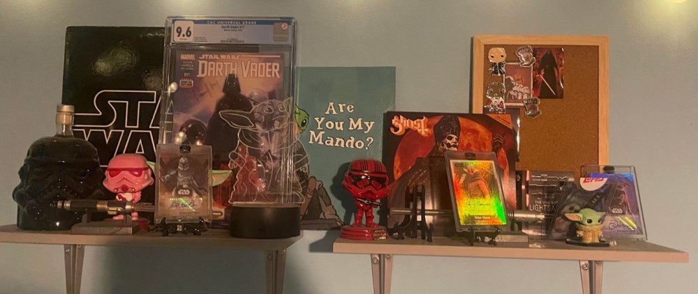 JM: I have a LARGE collection of Star Wars toys, books, and cards. My favorite Star Wars items are helmets, I am constantly bringing home more helmets and we are running out of room for all of them. My other hobby is vinyl collecting. I love hunting for older records to add to my collection.