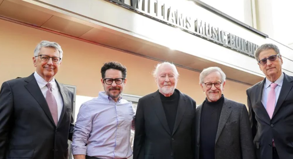 84 years after he first visited the MGM Studio’s musical building as a 7 year old boy, John Williams attended a ceremony which saw this venerable space rechristened the John Williams Music Building. Joining him were Star Wars director J,J. Abrams, producers Frank Marshall and Kristie Macosko Krieger and of course the man who has been fortunate enough to have had 29 of his films scored by the Maestro, Steven Spielberg. Abrams had this to say of the greatest film composer of them all.