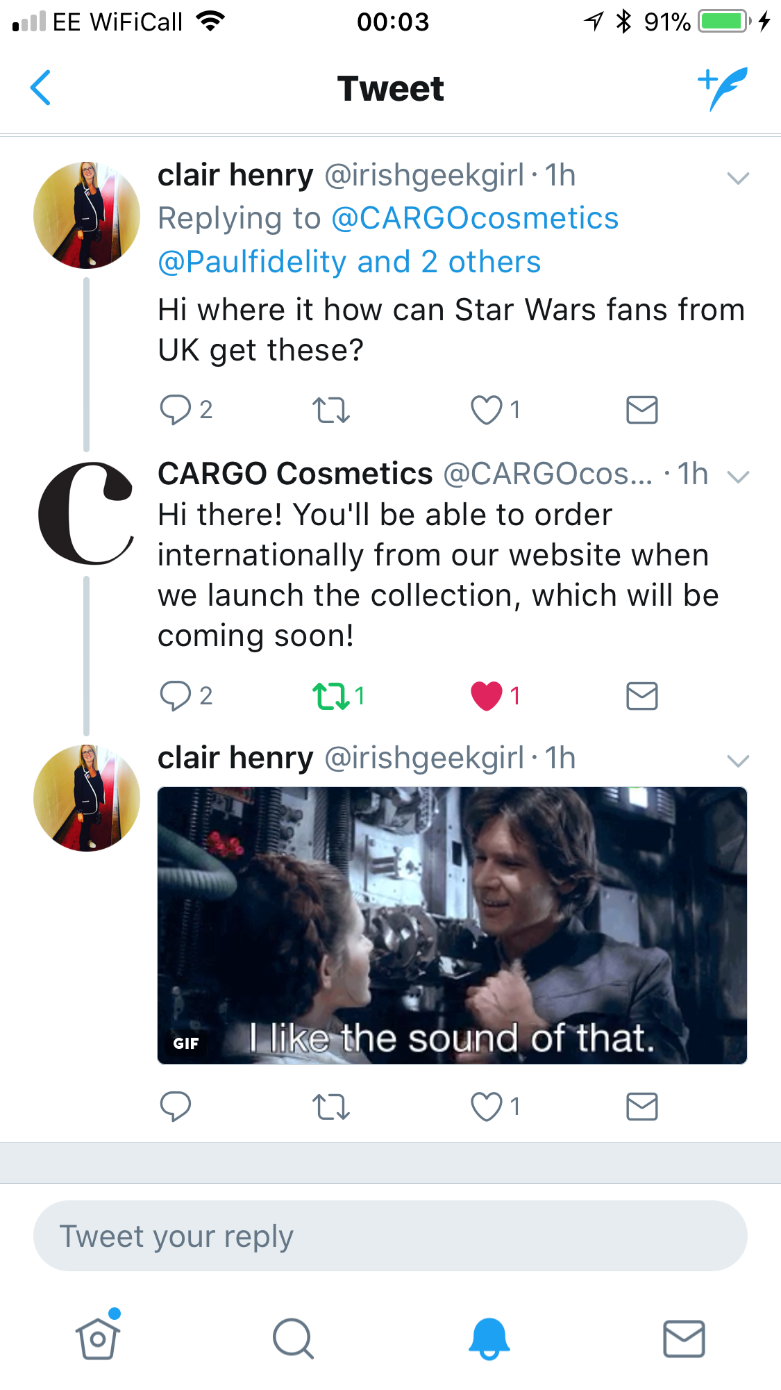 For those fans who live in the U.S. the highly anticipated Star Wars and Cargo Cosmetics collaboration is now available to purchase online at Kohls.com Themed on the light and dark side and The Resistance and First Order, the range includes 2 eye shadow palettes and 2 mascaras.