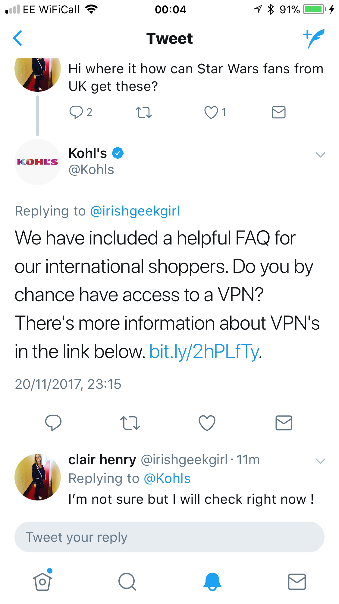 The GREAT news is the range will be available online for international shipping but if you can’t wait that long you can order via a VPN. However please read Kohls FAQ about VPNs before deciding to purchase via this route.