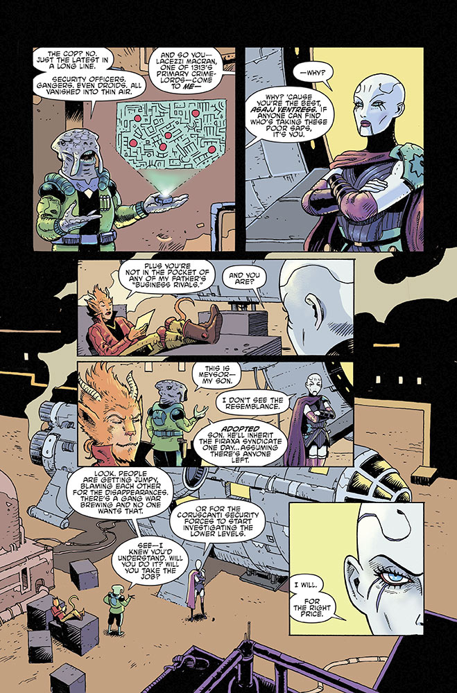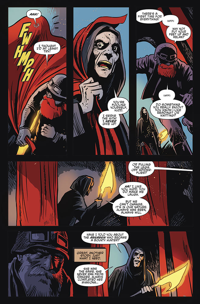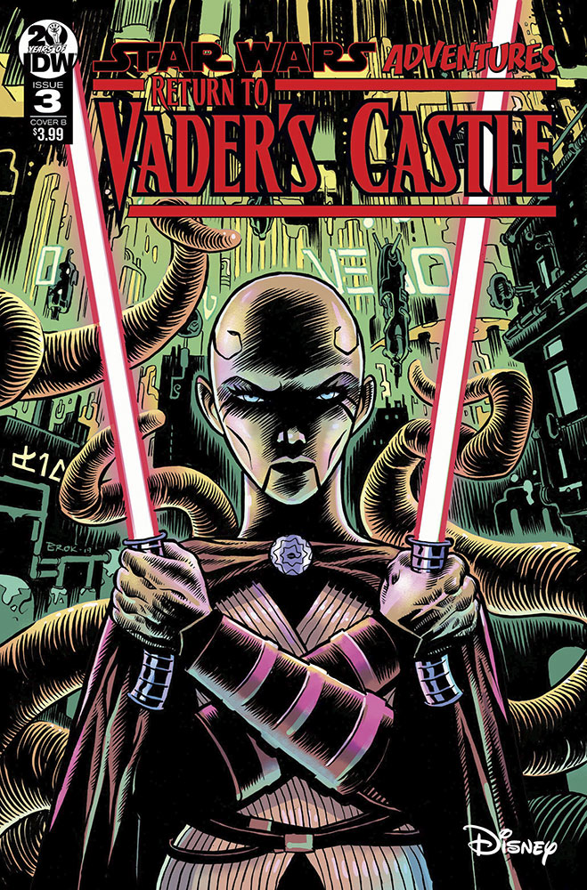 In Star Wars Adventures: Return to Vader’s Castle issue #3, due out on October 16, the Force-sensitive Nightsister who once served Count Dooku returns for one more mission…for the right price. The twisted tale, “Bop Sh-Bop, Little Sarlacc Horror,” written by Cavan Scott with art by Francesco Francavilla and Nick Brokenshire, continues IDW’s miniseries of spooky Star Wars stories perfect for the Halloween season.