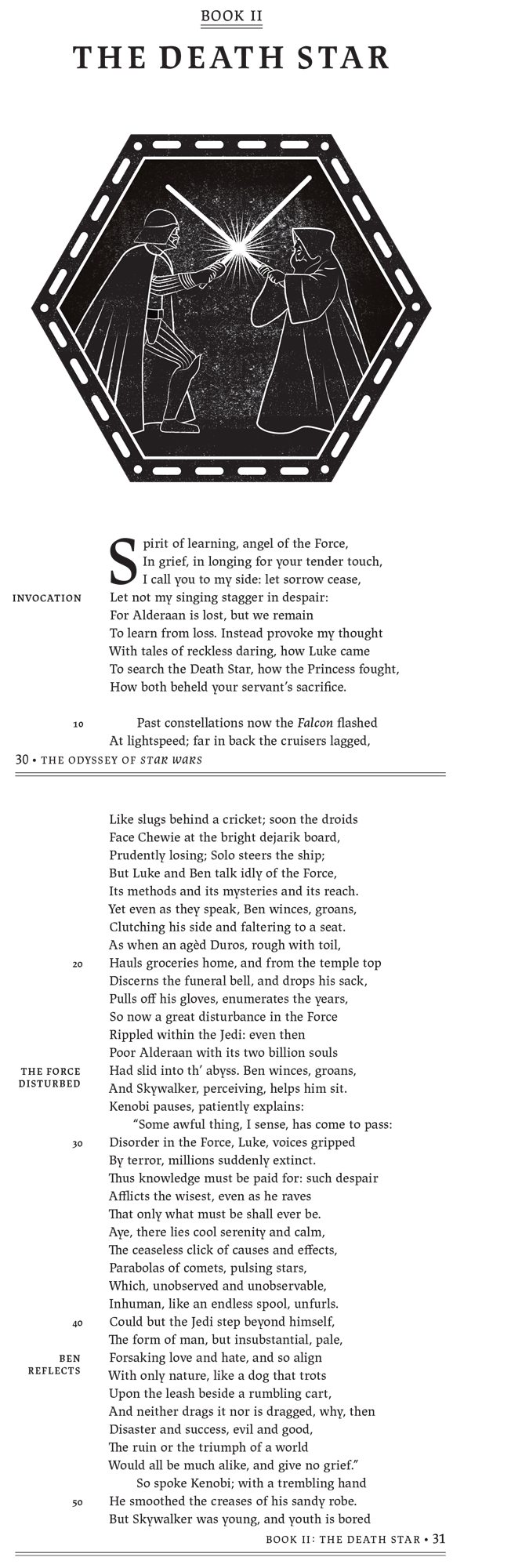 A Stanford-educated poet and scholar by day, teaching the classics at Dalhousie University near his home in Halifax, Nova Scotia, Mitchell’s affinity for Star Wars grew out of another author’s interpretation, a children’s book read aloud to his then four- and six-year-olds at bedtime. “I had always been a kind of Star Wars fan, maybe six out of 10 on a scale of devotion. I could quote lines, but I wasn’t a real scholar,” Mitchell tells StarWars.com. “But when I started reading to the kids and they responded so eagerly, I thought to myself, ‘Well, here I am actually transmitting a myth, which is what I read about in my work all the time. This is actually the continuity of our culture happening in real time.’ And then during the process of reading that book, maybe for the tenth time to them, I thought to myself, ‘Why don’t I just try and see whether this myth would work in a purely poetic, Homeric form?’” Mitchell penned about 10 or 20 lines in the style that night, which became the basis for the opening lines of his new book, The Odyssey of Star Wars. “Once I realized I was really enjoying every step of it, then I just kind of pushed on forward.”