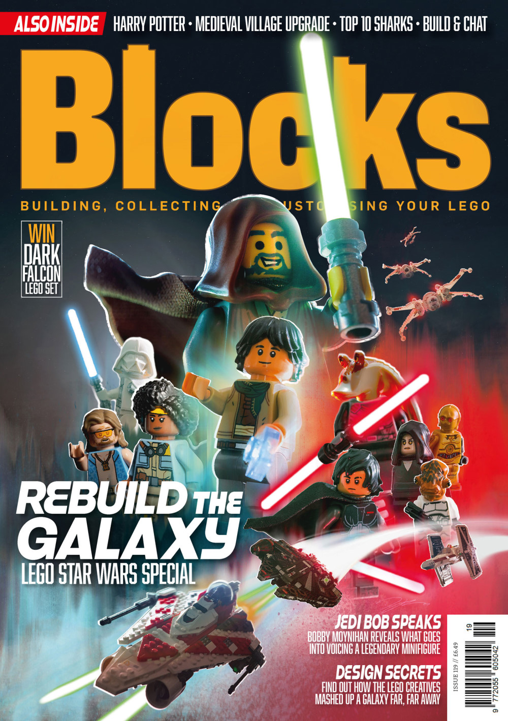Blocks magazine Issue 119 is going so deep into LEGO Star Wars: Rebuild the Galaxy that we’ve ended up in the trash compactor. Exclusive features go inside the creation of the new story that sees the saga turned upside down, covering both the special and the models, including an interview with Bobby Moynihan – the voice of Jedi Bob. Within the 116 pages there are also Harry Potter reviews, an upgrade for 10332 Medieval Town Square, a new Build & Chat and a look back at 1989.