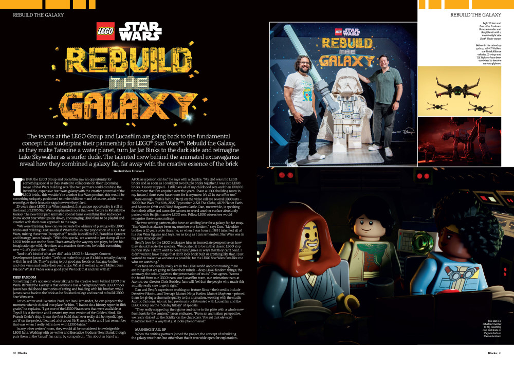 LEGO Star Wars: Rebuild the Galaxy is the epic new animated special that mixes up the entire galaxy – Ewoks will be bounty hunters, Jar Jar will be a Sith Lord and Jedi Bob will take on a starring role! Inside the magazine, Blocks learns how the writers crafted the new story, what went into designing the models and when Bobby Moynihan, the voice of Jedi Bob, first discovered the obscure fan-favourite Jedi. It’s illustrated with new stills from the show, minifigure design sheets and more.