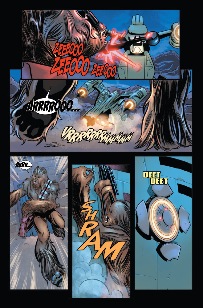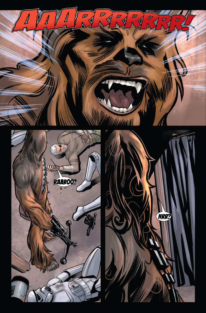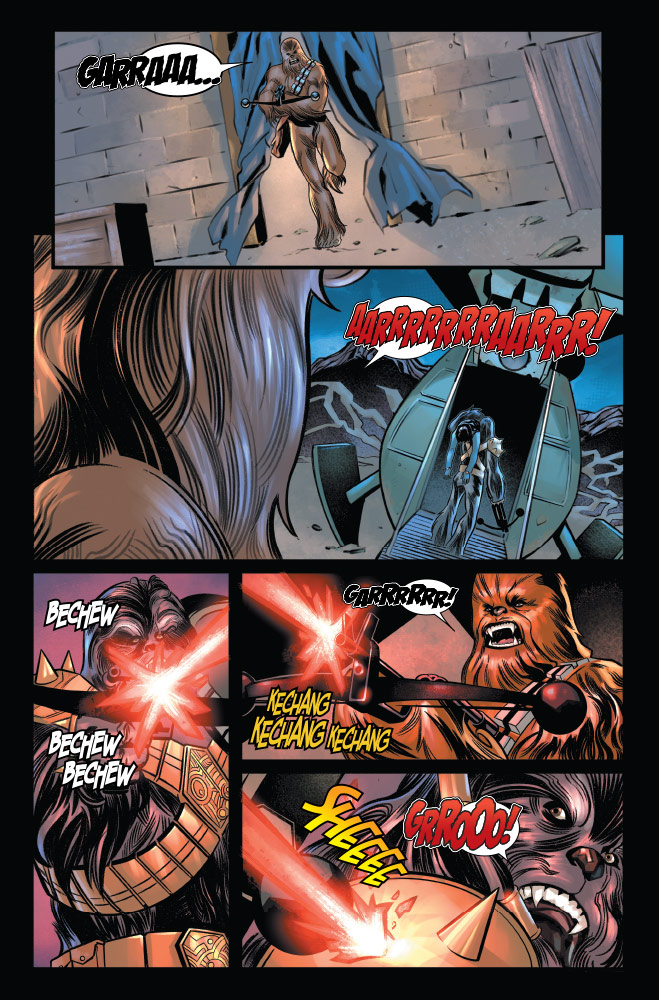In StarWars.com’s preview of Star Wars: Han Solo & Chewbacca #4, Chewie chases Krrsantan to try to save his friend before the bounty hunter can get away…