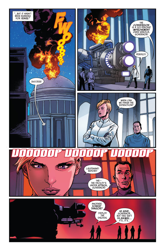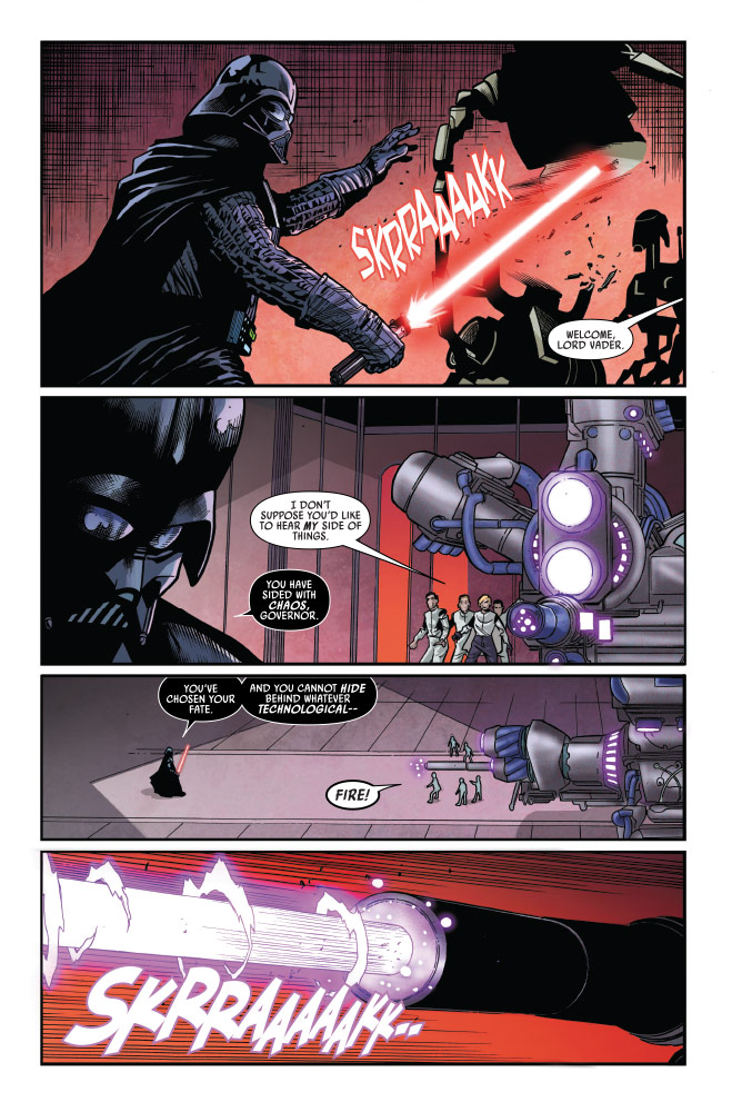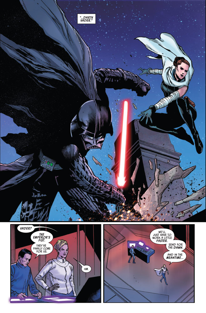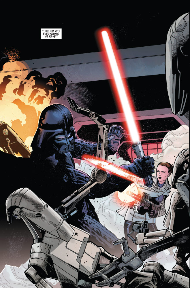 Star Wars: Darth Vader #24, the “Crimson Reign” crossover continues, as Vader and Sabé join forces. The former handmaiden to Queen Amidala has revealed that she knows Vader’s true identity, and has sought his aid in helping Anakin Skywalker’s childhood friend, Kitster. This leads the two on a collision course with a corrupt governor and Crimson Dawn…