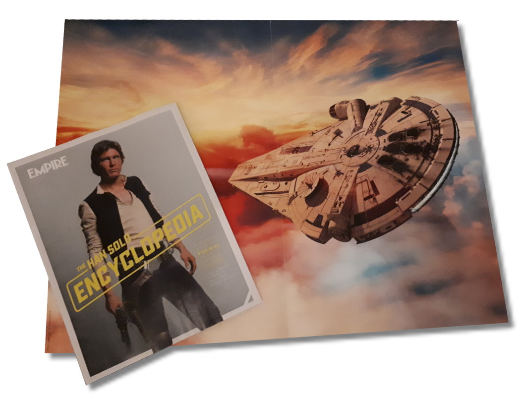 We have the magazine in-hand and it’s a bumper issue, including The Han Solo Encyclopedia, a 46 page magazine that takes you through the life and career of Solo as well as an exclusive poster showing the Solo: A Star Wars Story era Millennium Falcon in flight.
