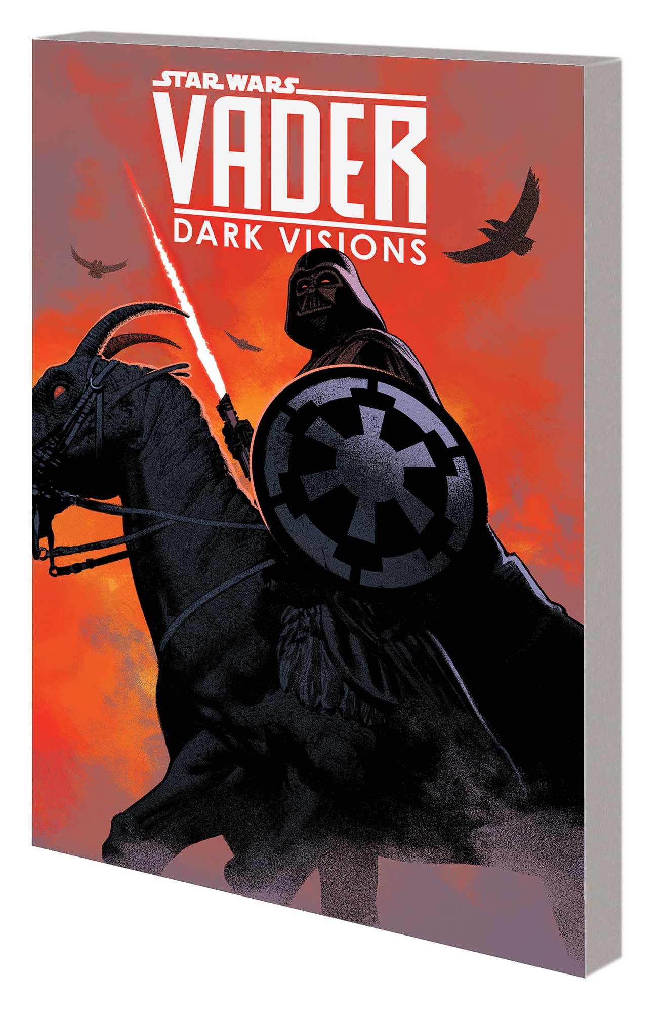 | Who is Darth Vader? He has been many things: enforcer, commander, destroyer. He is, to many throughout the Galactic Empire, the ultimate symbol of power and fear. But there are those who have seen the Dark Lord in a different light. Some corners of the galaxy are so desperate that even Vader can be a knight in shining armor — while for certain Imperial Commanders, Vader’s anger is the price of failure. But what is it like to lose your heart to a Sith Lord — and what fate awaits the star-crossed lover who has fallen for a man so unattainable? Plus, learn how it feels to be an X-wing pilot going head-to-head with Vader’s TIE Fighter — and discover more of the many sides of the galaxy’s greatest villain! Collecting STAR WARS: VADER — DARK VISIONS #1-5. |