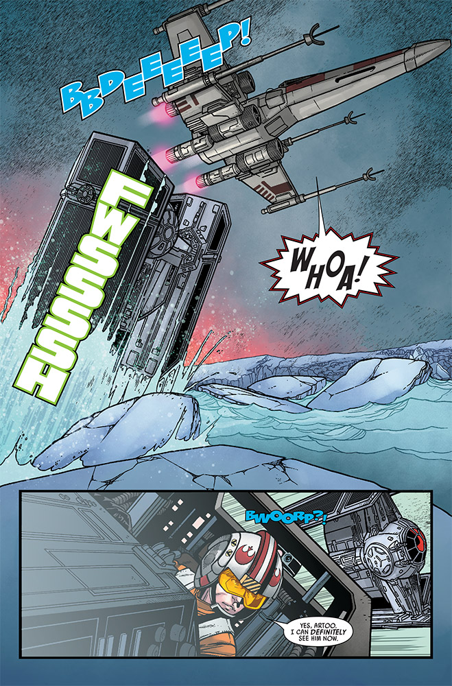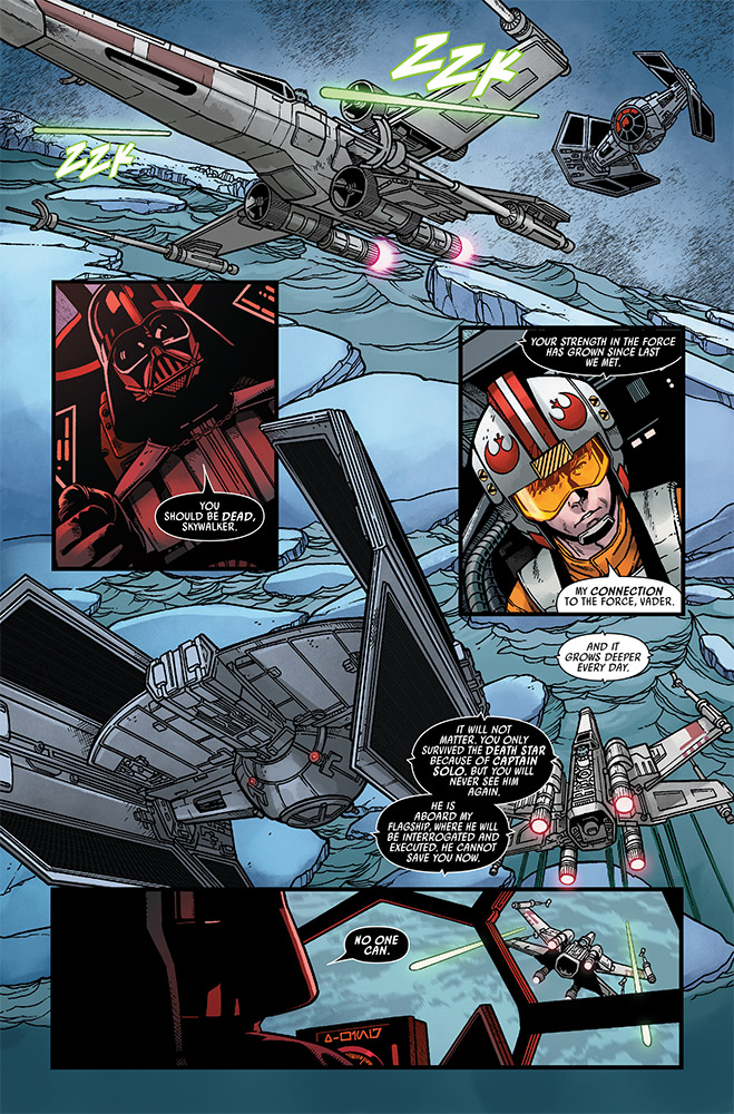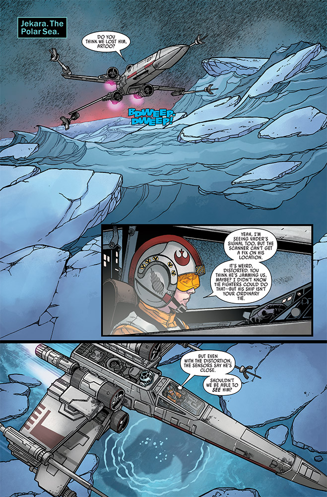 Above the Polar Sea of Jekara, Luke Skywalker’s scanners detect a nefarious presence, but Darth Vader is nowhere in sight. That is, at least, until his TIE emerges from where Luke least expects it.