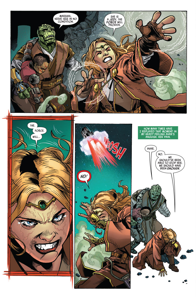 Following deadly attacks by the marauding Nihil, many Jedi have died. In StarWars.com’s exclusive preview of Marvel’s Star Wars: The High Republic #12, the survivors look to pick up the pieces. For Avar Kriss, among the brightest lights of the Jedi Order, a new wound emerges: guilt.