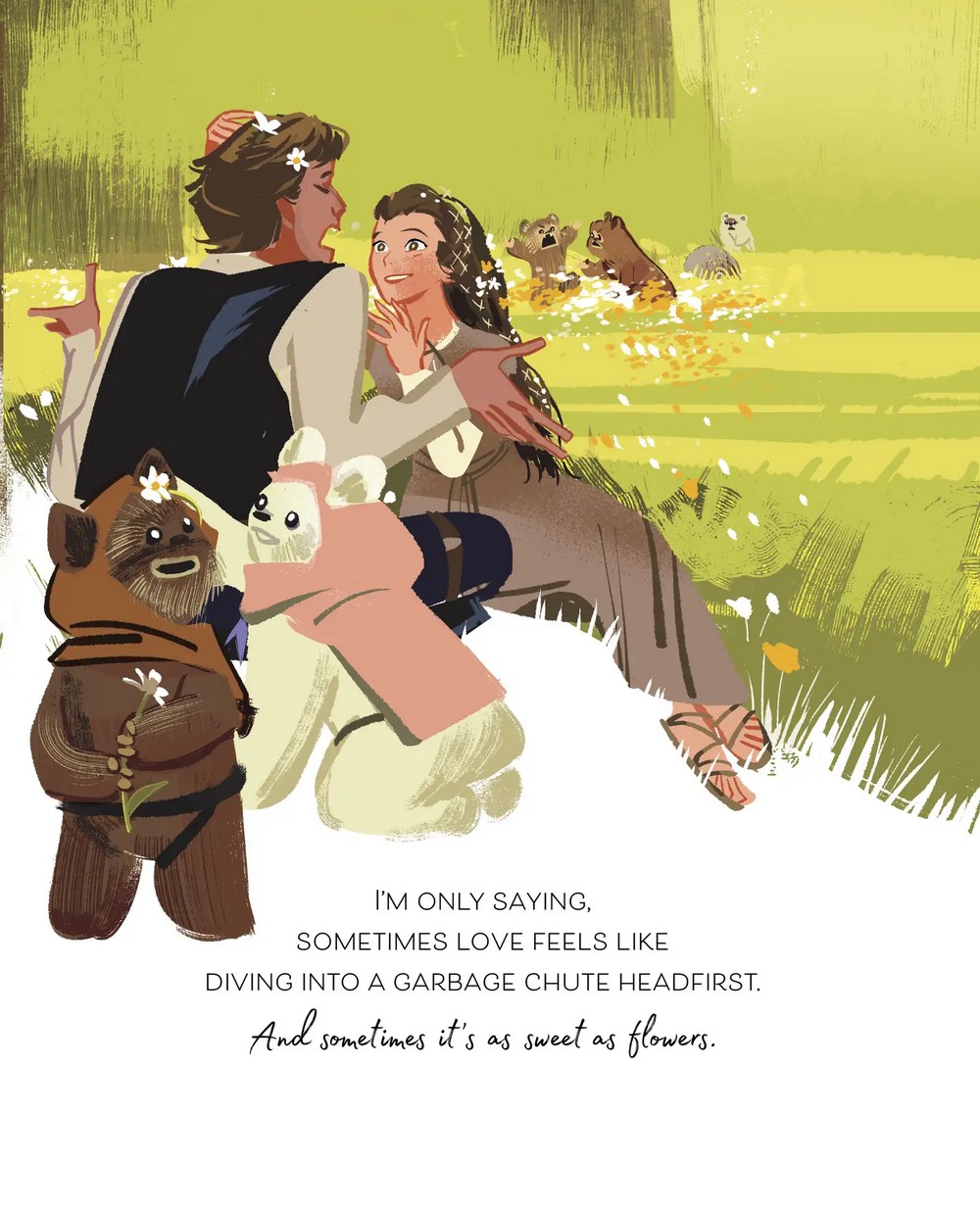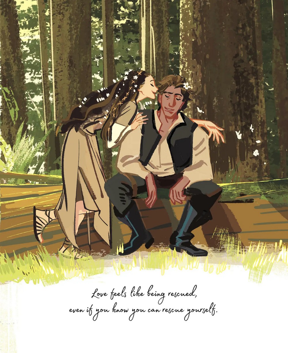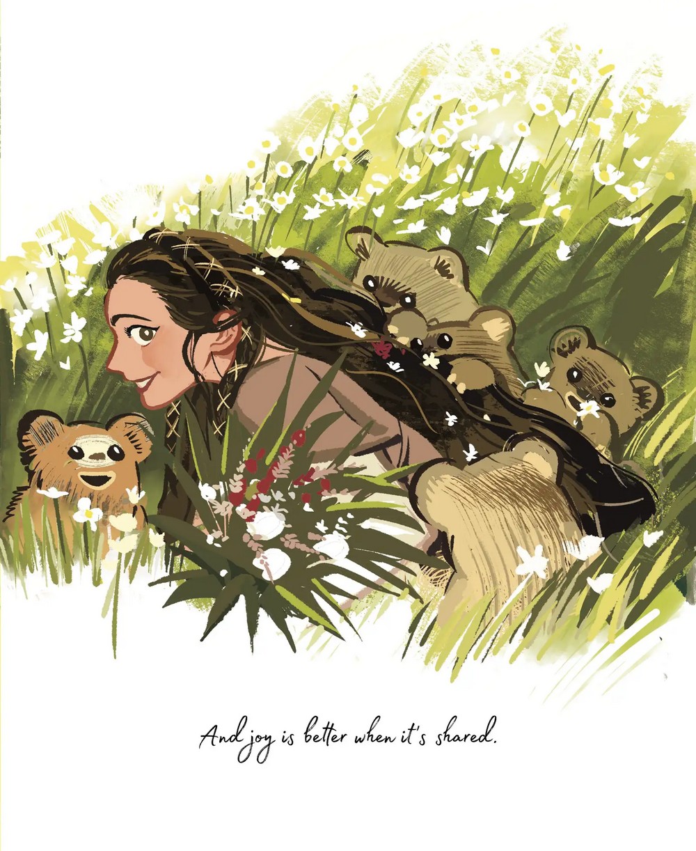 “But in this book, I was able to pull it back in. Yes, there are woklings running around, causing chaos. But it’s so clear—Han and Leia have eyes only for each other. In every image, no matter what’s happening, their love is at the center,” Revis told io9 over email previously when discussing the intimate scope of Someone Who Loves You, something keenly felt in Li’s artwork. “We are back in that private moment, that personal time, where there’s nothing more important than their love. It’s just a few sentences in The Princess and the Scoundrel. But that concept and emotion is the whole book of Someone Who Loves You. Turning a brief, barely there line into an entire story, basking in it—it really reminds me of how big love can be.”
