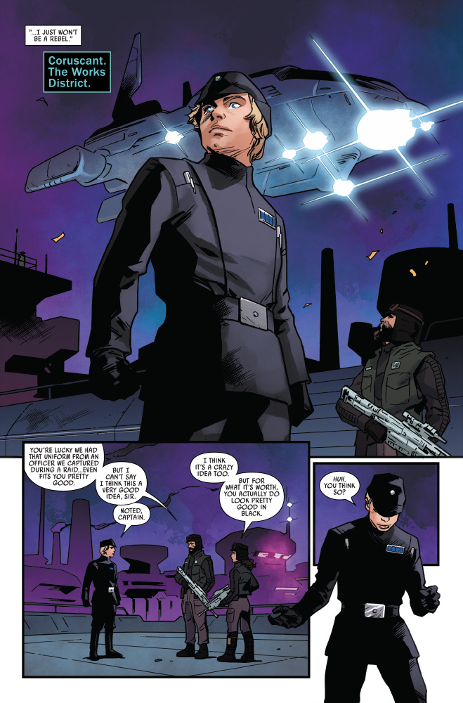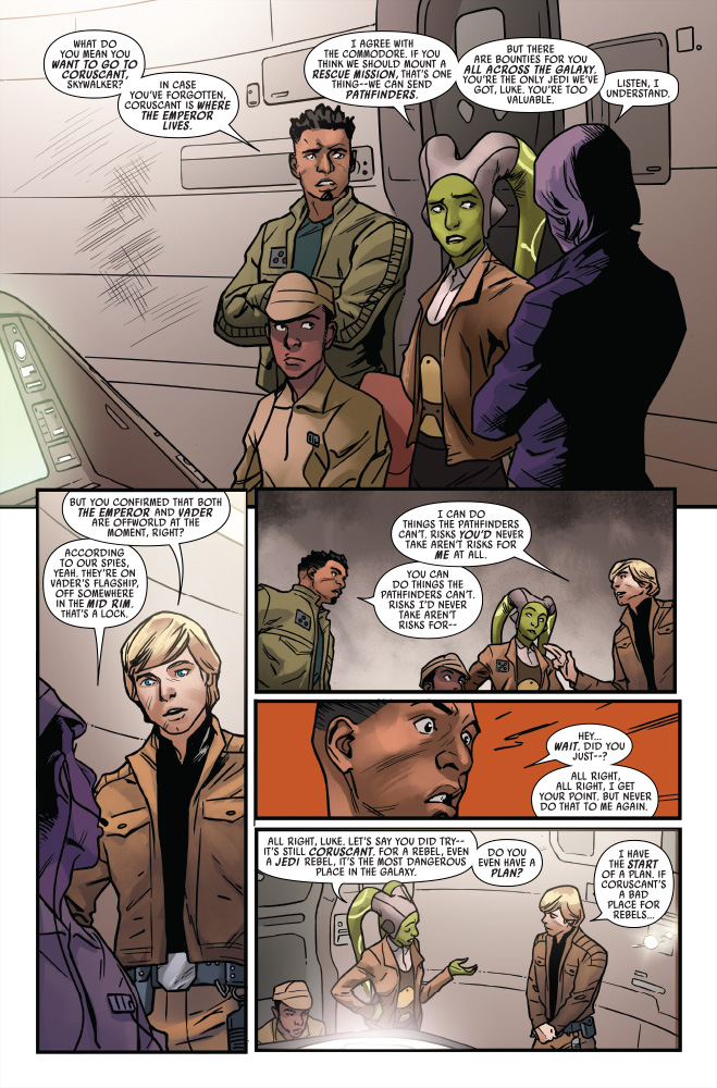 A family of Imperial defectors with knowledge of a new Death Star contacted — and was dismissed — by the Rebel Alliance. But not by Luke Skywalker. In StarWars.com’s exclusive preview of Star Wars #28, the former Lieutenant Milton and his family struggle to survive, while Skywalker hatches a daring solo plan to infiltrate the very heart of the Empire…