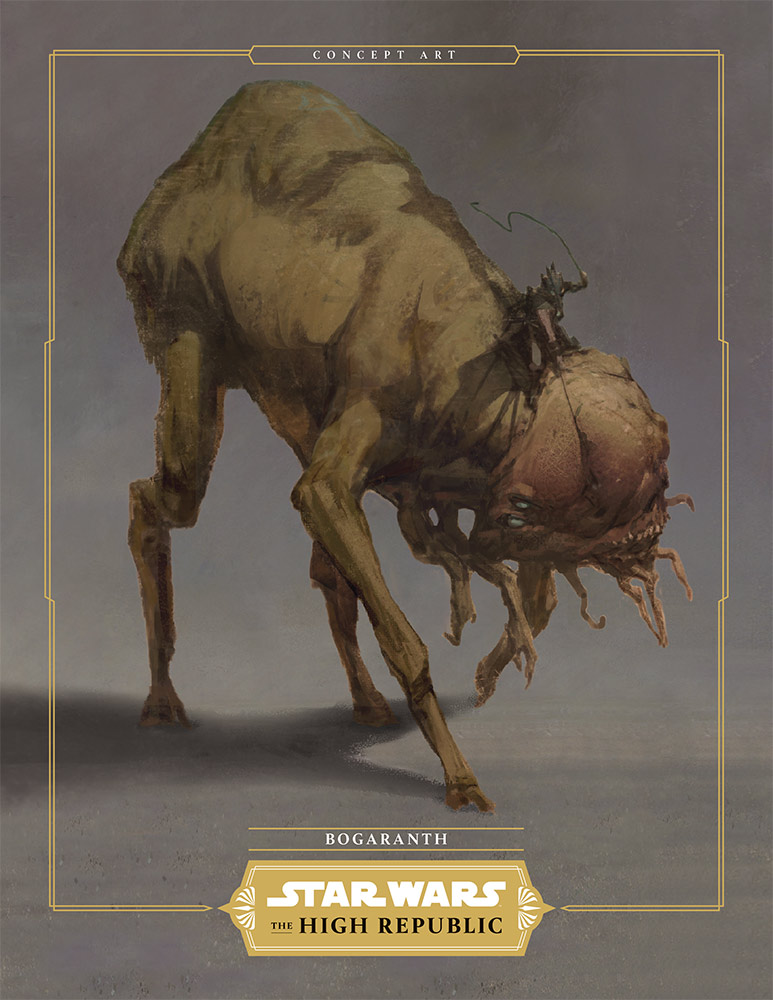 We also got a glimpse at concept art of the Nihil creature, the Bogaranth, arriving next week in the third issue of IDW’s Star Wars: The High Republic Adventures. All we know so far is that the Bogaranths are ravenous beasts that leave a trail of slime in their wake as they do battle inside the Nihil arenas.