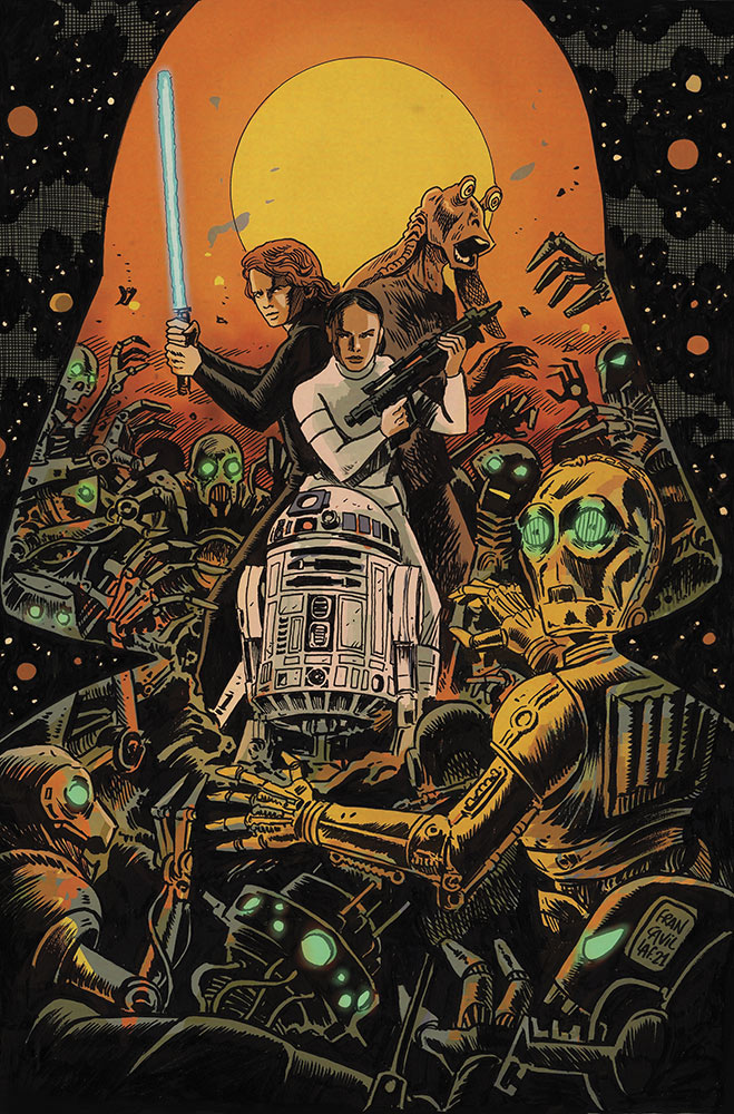 “This year is the culmination of all the stories we’ve been telling, as we return the heroes of our original series to Mustafar,” Scott tells StarWars.com. “Lina, Hudd, Skritt, and even CR-8R share the terrible nightmares they’ve been having. We will see Anakin, Jar Jar, and Padmé tussling with undead droids, Luke facing the spirit of the swamp on Dagobah, and Han having a huge problem with Chewbacca. Oh, and we also throw in the biggest terror of the Star Wars galaxy: a certain green-haired, long-eared smuggler by the name of Jaxxon! All this, and the return of Darth Vader from beyond the grave!”