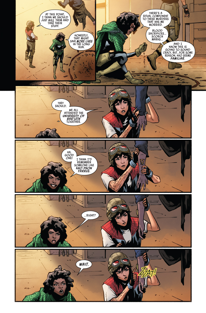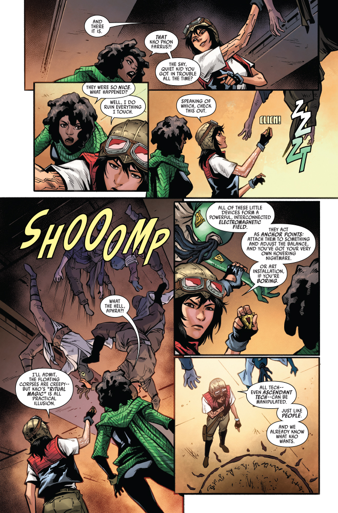In StarWars.com’s exclusive preview of Marvel’s Star Wars: Doctor Aphra #18, the rogue archeologist and Sana Starros stumble into yet another macabre masterpiece left behind by her enemy, Kho Phon Farrus.