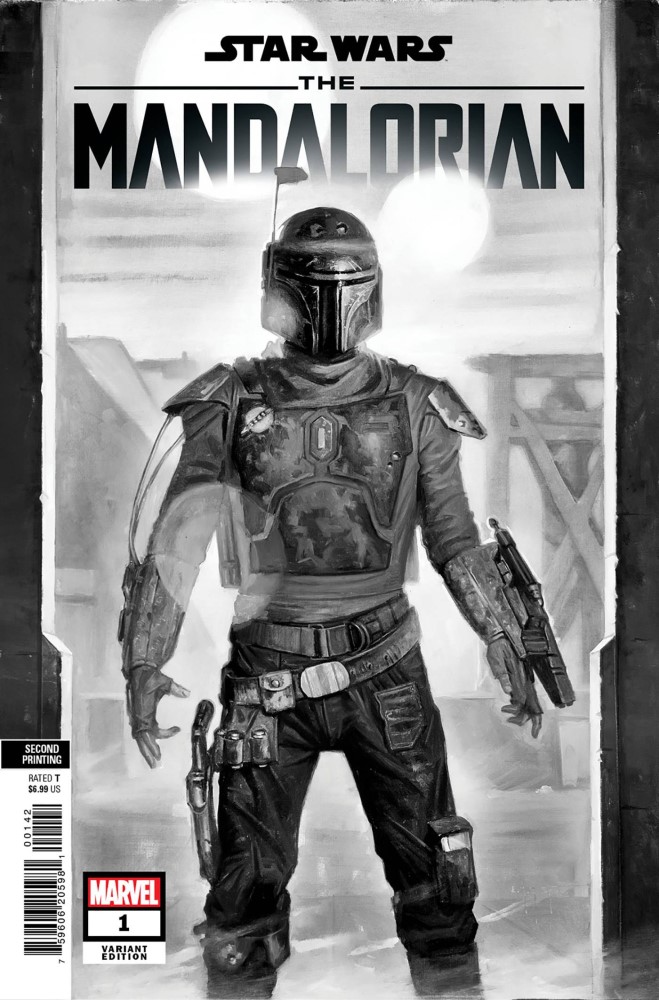 As the Marvel adaptation of the second season of The Mandalorian progresses, second printings start to roll in and here we have an early look at the newsstand second printing and the Gist variant, now in black and white and both on sale 16th August.