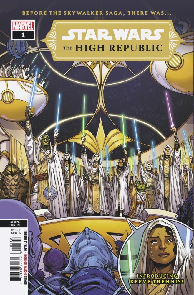 Can all those folks who said The High Republic was a wash out please go and stand in the corner. Not only have all the books so far hit high on the New York Times Best Sellers List, but both IDW and Marvel have enjoyed huge success with their respective first issues with huge pre-order sales and in the case of Marvel a forthcoming 4th reprint of Star Wars: The High Republic #1. No cover has been revealed as yet, but to whet your appetite for some reprint goodness, here’s a look at the cover of issue 1 and the first two reprints.