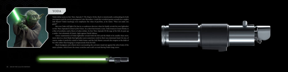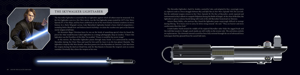 Filled with detailed illustrations of the series’ most iconic lightsabers, the book explores the intricate detail of the hilts and the brilliance of each energy blade, tales of each weapon’s construction, and additional anecdotes.