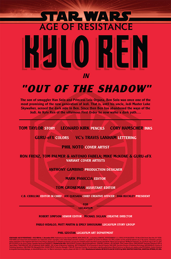 Written by Tom Taylor with art by Leonard Kirk and a cover by Phil Noto, Age of Resistance — Kylo Ren #1 hits shelves September 25.