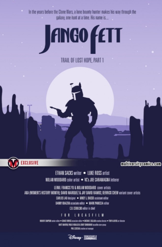 Letterer: VC’s Joe CaramagnaJANGO FETT EMBARKS ON A BRAND-NEW MISSION! AS SEEN IN STAR WARS: REVELATIONS! ETHAN SACKS (STAR WARS: BOUNTY HUNTERS) & LUKE ROSS (STAR WARS: WAR OF THE BOUNTY HUNTERS, STAR WARS: DARK DROIDS) team up to continue the legacy of one of the greatest bounty hunters: JANGO FETT! A bounty to find! A mystery to solve! A treaty at risk! All this with AURRA SING in the mix!!!