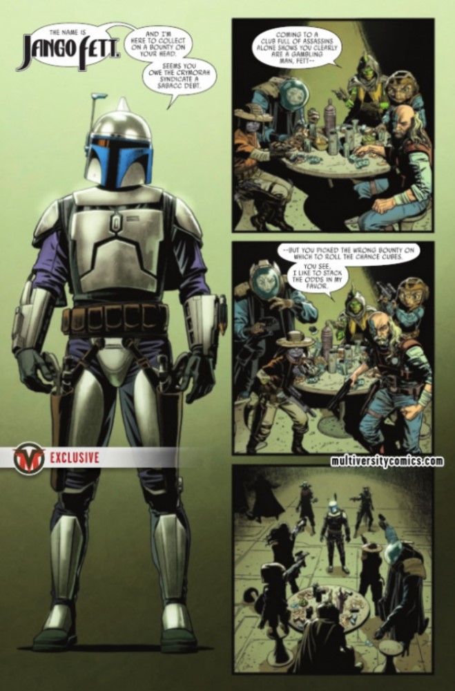 Via Multiversity Comics, this is a look at the opening pages of Jango Fett #1 from writer Ethan Sacks and artist Luke Ross, the first issue of the new mini series which arrives this coming Wednesday.