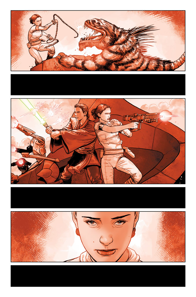 “In the wake of Empire Strikes Back, Darth Vader’s on a terrifying mission to destroy everyone who hid his son Luke from him,” says writer Greg Pak. “But in the process, he uncovers a shadow from his past that he’s absolutely not ready for. Working on this book is a constant shock, revelation, and thrill. We’ve been given the green light to take an unprecedented journey into the Dark Lord’s dark heart and explore just what Padmé still means to him after all these years. The entire creative team is bringing everything they have to this story and I can’t wait for you to discover the shocking truth behind these images.”