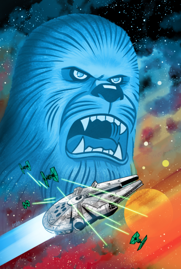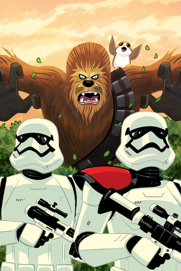 Charm says, “I’ve been lucky enough to work within a lot of Star Wars eras in this series, but doing something in the current, post-Last Jedi landscape is really exciting. The fact that it focuses on Chewbacca and what he’s been up to between these movies is more so.”