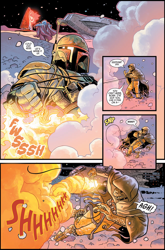 What’s more exciting in the realms of the underworld than a one-on-one between Boba Fett and Bossk? Not much, and the second issue of War of the Bounty Hunters delivers just that, landing on doormats 14th July.