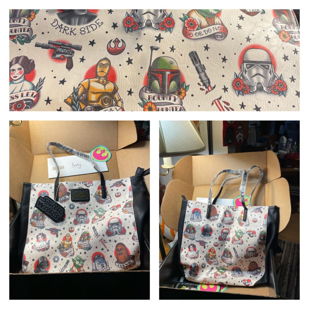 Loungefly tote featuring Yoda, R2-D2, Leia, C-3PO, Boba Fett and many other Star Wars characters and sayings. This includes my favorite Yoda Quote…”Do or Do Not”. I now know which bag I am taking with me to Star Wars Celebration 2022 next May!