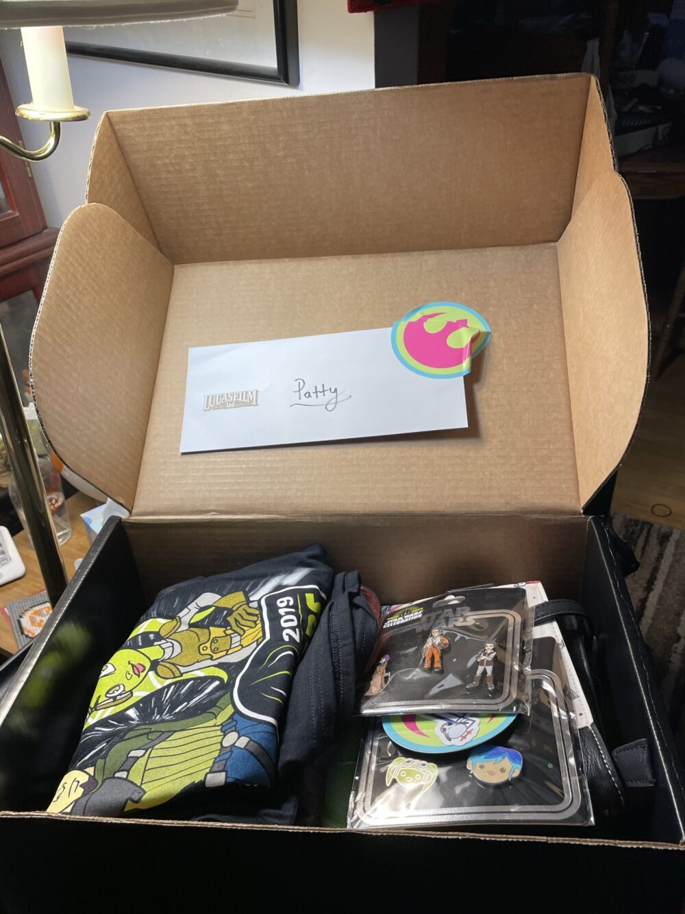 Today is my husband Michael’s birthday, but yesterday it felt like it was mine when a special package arrived on my doorstep. When I saw the box I thought it was something I’d ordered for my husband’s birthday. However, it was a special package from Lucasfilm instead, so for me it was an unexpected gift from my favorite franchise, Star Wars!