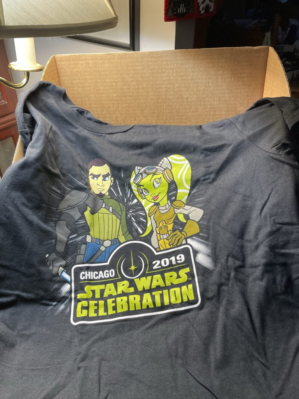 There was a short-sleeve shirt from Star Wars Celebration 2019 in Chicago featuring one of my favorite couples in Star Wars, Hera and Kanan from Star Wars Rebels!