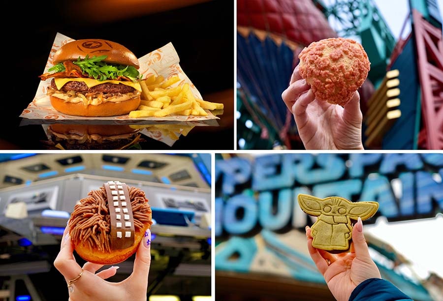 Disneyland park: Galactic Grill, Kat Saka’s Kettle, beverage carts in Star Wars: Galaxy’s Edge, Popcorn near Star Trader