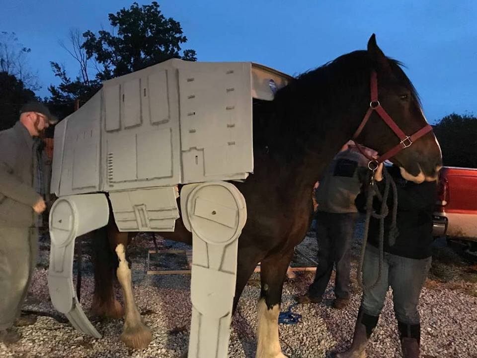 Mike of Mike’s Tiny Shop has been building a costume for Moana the Clydesdale to make her look like the armored ground transport first used by the Galactic Empire in Star Wars: The Empire Strikes Back. She will be competing in the Costume Class at the World’s Clydsedale Show in Madison, WI.