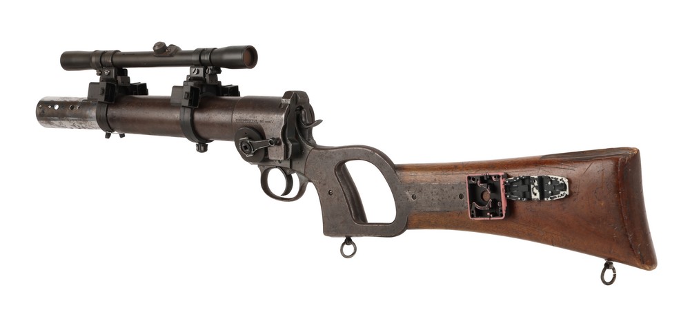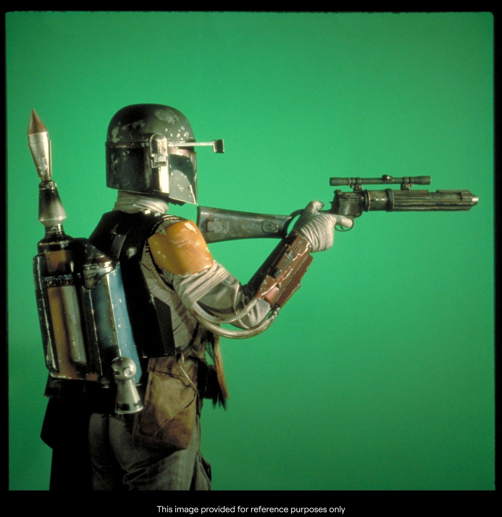 Starting: £175,000Boba Fett’s (Jeremy Bulloch) hero screen, photo, and serial number-matched EE-3 carbine rifle from Irvin Kershner’s Star Wars: The Empire Strikes Back. Boba Fett – one of the most feared bounty hunters in the known galaxy – was one of six hired by Darth Vader to capture the crew of the Millennium Falcon, and eventually caught up with them in Cloud City. He then appeared to meet his end in the gut of the Sarlacc in Return of the Jedi, but because of the character’s tireless appeal, he has since been “resurrected” in The Mandalorian and The Book of Boba Fett.
