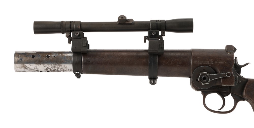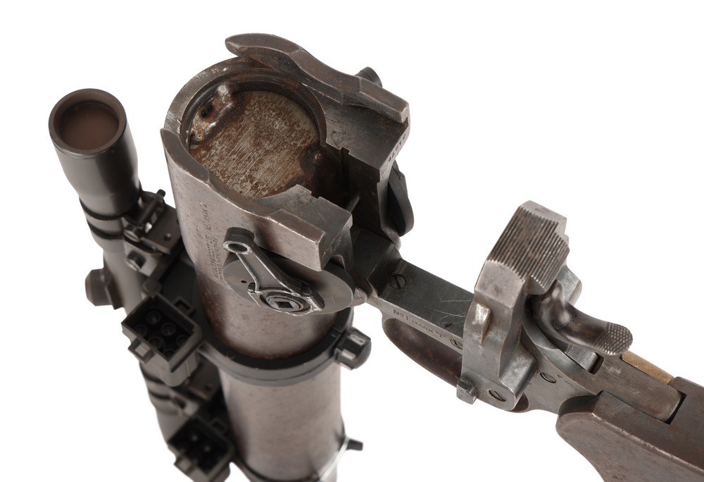 The blaster was stripped back to the base flare pistol post-production, and has since been carefully restored to how it looked in the films through the addition of replica greebles and accoutrements, which have been intentionally weathered and distressed to be as accurate as possible. The flare pistol is the only original element of the lot. In addition to the replica elements, the scope mount has undergone some sympathetic restoration. Dimensions: (largest) 80.5 cm x 9.5 cm x 23 cm (31.75″ x 3.75″ x 9″)